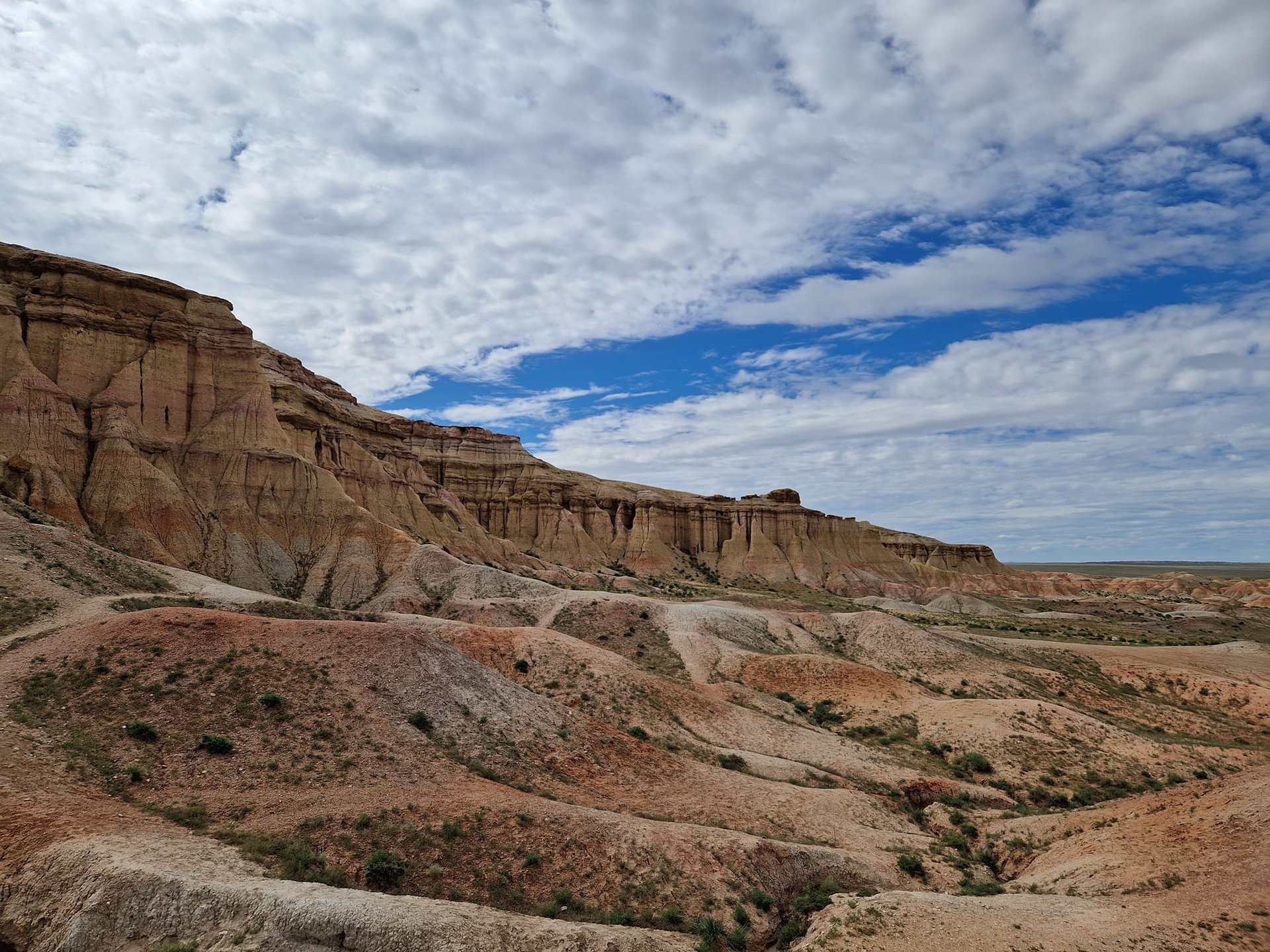 After breakfast, journey to Tsagaan Suvarga, a fascinating cliff formation in Southern Mongolia. The Cliffs colorful layers, shaped by millions of years of erosion, offer stunning views. From a distance, the Cliffs resemble the ruins of an ancient city. The site provides great photo opportunities and you will have time feel the nature and have time to explore the area.